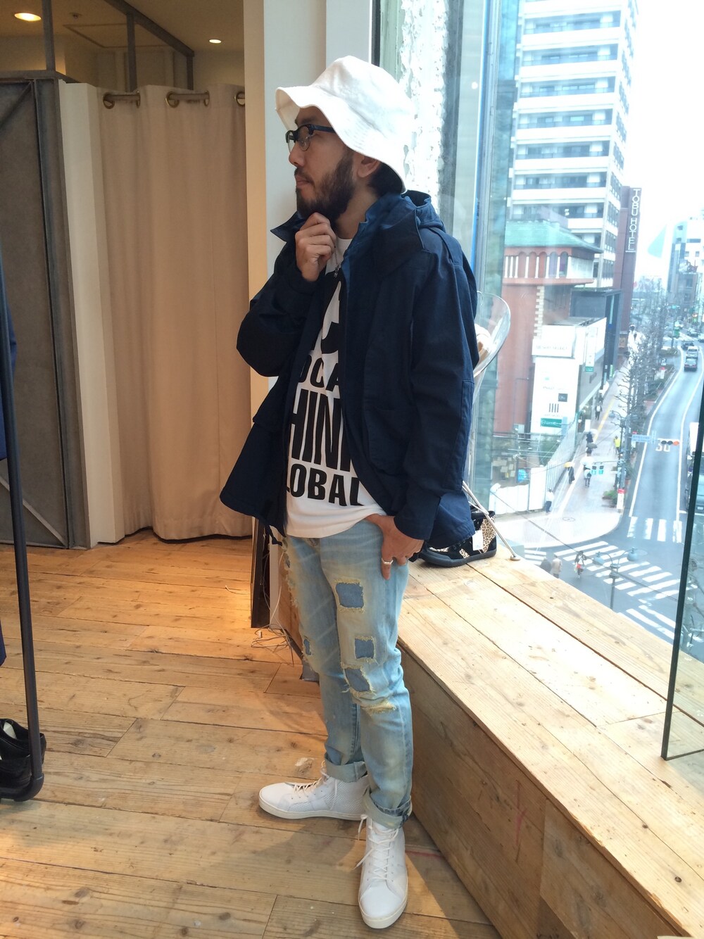 最近気にいっているホワイトをメインとしたコーディネート‼︎ ミリタリーを野暮ったく見せないようにサイジングに工夫してみました(^-^)