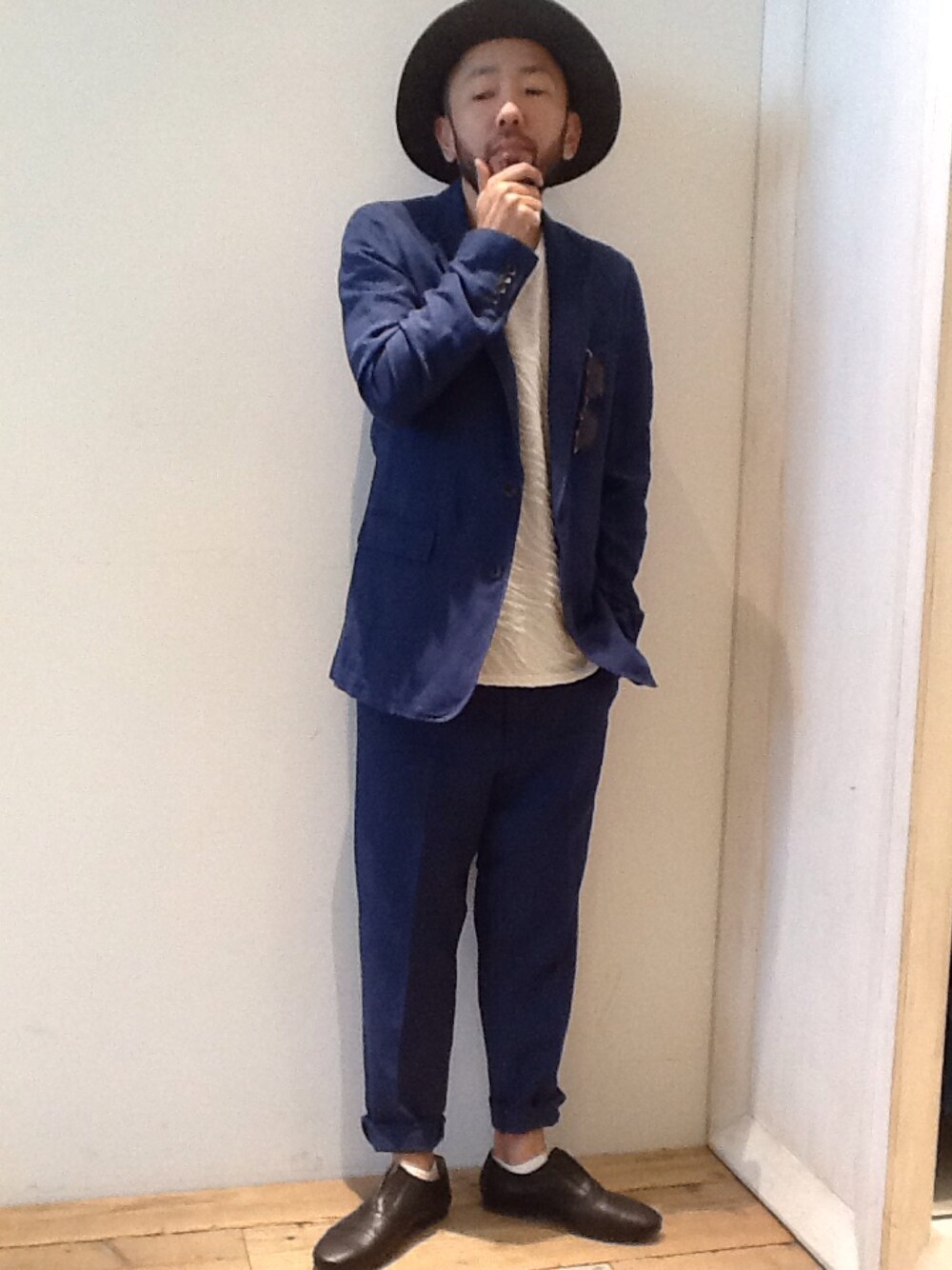 大人の休日セットアップスタイル(^o^) パンツはクロップド丈に!! 麻素材の柔らかさをいかしたスタイルにまとめました!!