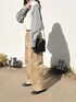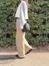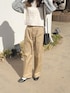 チノパンにストライプシャツと ニットベスト合わせ👔👖🌷♡♡ ↪︎ チノワイドストレート(股下68cm) color:キャメル , size:M ワイドシルエットのチノパン ゆるっとシルエットが可愛いっ🥹🤍 股下68cmを着用してますが 64cmのタイプもあるので 身長や着こなしに合わせてサイズが選べます🫶🏻 お気に入りのミニバッグもHoneysです🧳❤︎
