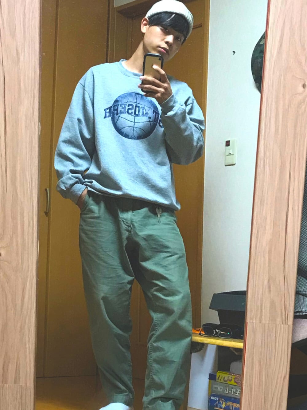 とある日のコーデ⑦ 古着屋で買った服たち、ブランド名はわからん。この格好でバスケしてきます。