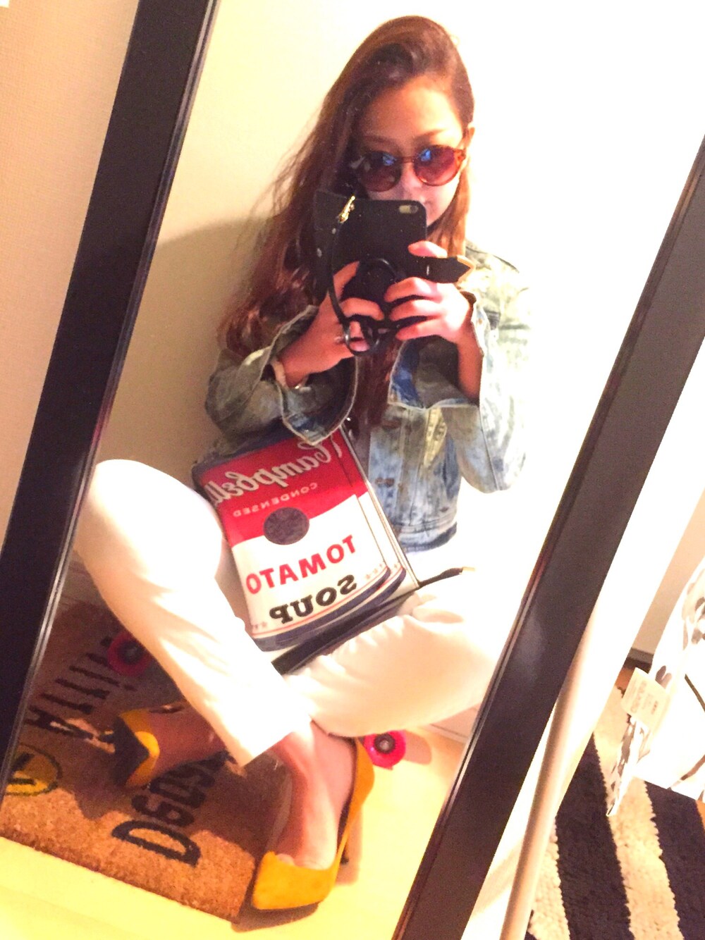毎年恒例💡 春になると全身白が着たくなる〜 トップス見えてないけど 真っ白〜 そしてお気に入りクラッチ💗 アンディーウォーホル💗 雑貨屋さんでプチプラでかったやつ💗 もーサラッとGジャンでおそと出られるくらいあったかーい😆 靴は奇跡の21.5cmのパンプス こーいうシンプルなかたちのパンプス ずっとほしかった〜!! この前たまたま見つけて即買い👍 憧れのふつーのパンプス(笑) 足ちいさすぎてベルトとかついてるのじゃないと 脱げちゃうんですよね(笑) 基本レディースは22.5〜しかサイズがないから(笑)