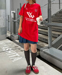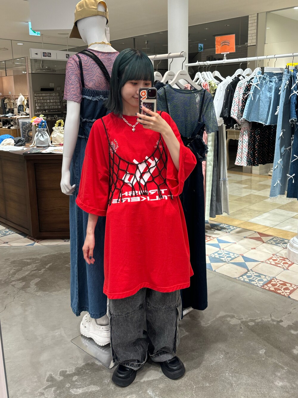 『ユニセックス スーパーBIGゲームTEE』 とにかくビックサイズ! 一枚でワンピースっぽく着てもかわいいですし ワイドデニムと合わせて着てもかわいいです! 『ショートパールビスチェ』 つけるだけでオシャレに見えるアイテムです! 流行りのレイヤードスタイルにかかせません! 『ユニセックス ヴィンテージライクフォースカーゴワイドデニムパンツ』 153cmでMサイズをベルトをつけて着用してます! ダボっとはけて加工感がとてもかわいいです!