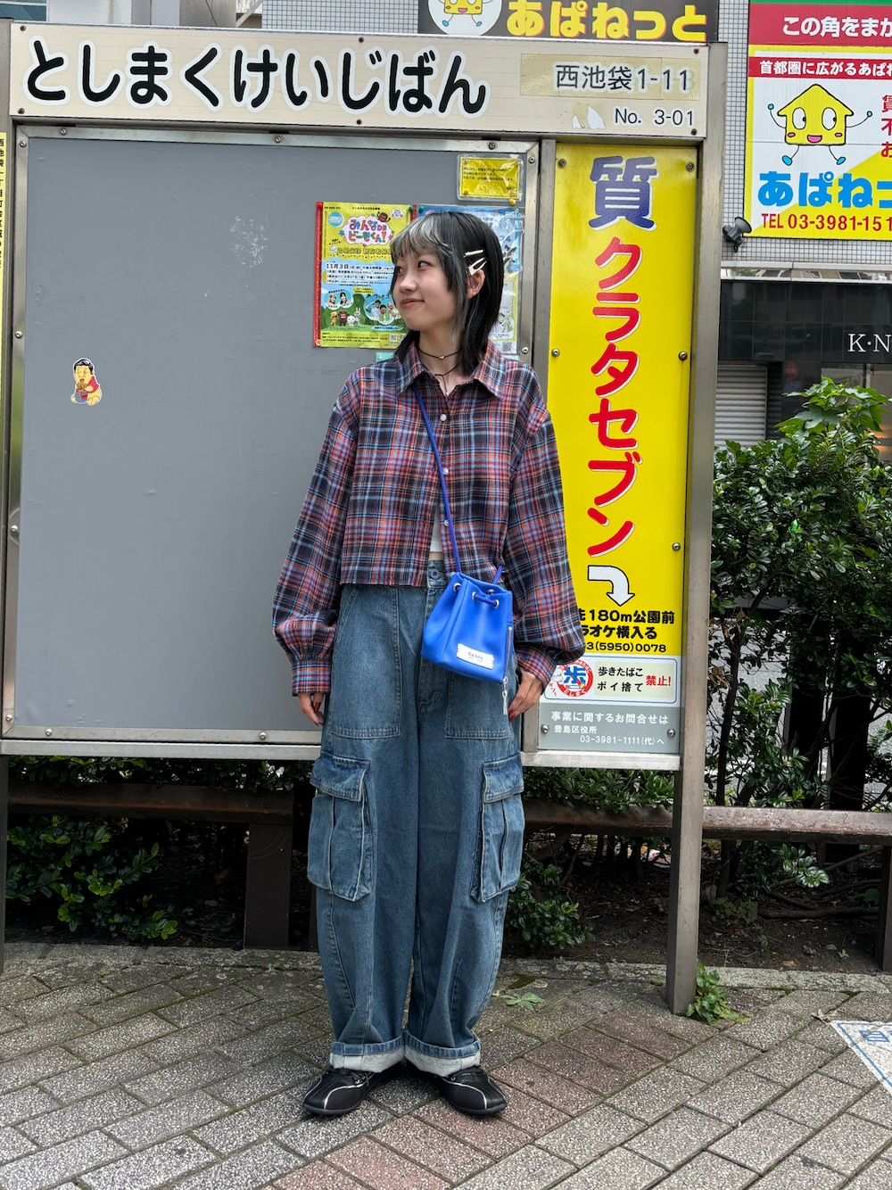 『ショート丈チェックシャツ』 赤と青のミックスされたチェックが 古着好きにはたまらないです! 裾も切りっぱなしになっていてかわいいです! 『CONES BOSS デニムカーゴパンツ』 153cmでSサイズをロールアップして 履いてます! ウエストゴムでボタンで2段回調節できます!
