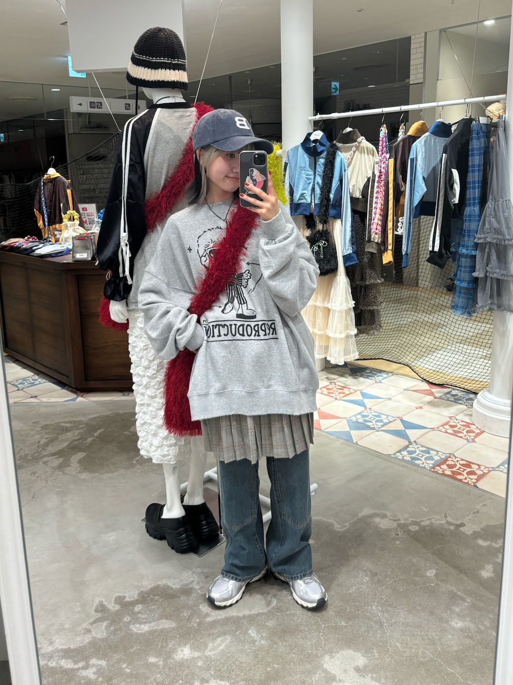 『RePRODUCTION LABEL セットインスウェット』 ユニセックスアイテムです! おしりまで隠れるゆったりオーバーサイズ です! 『プリーツミニスカート』 スカートとして履いてもかわいいですし 流行りのデニムにレイヤードスタイルも もちろんかわいいです! 『CONES BOSS ダブルニーデニム』 古着にしかないようなデザインと 色合いがとてもかわいいです! ユニセックスアイテムです! 153cmでSサイズを着用してます!