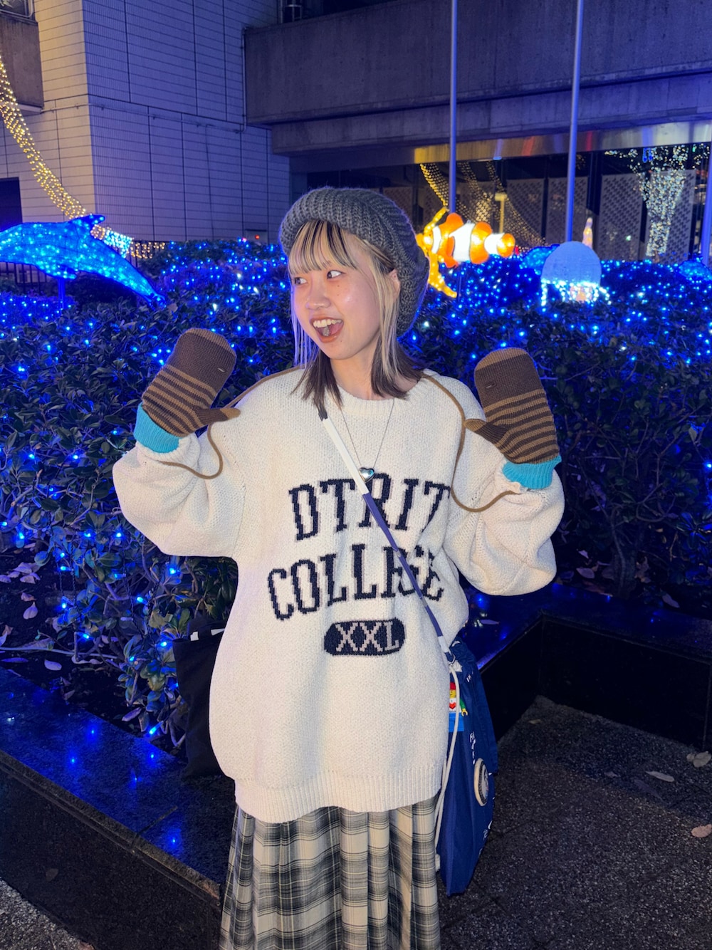 『モールカレッジロゴニット』 ユニセックスアイテムなのでオーバーサイズで 着れます! ちくちく感が本当になくてめちゃめちゃ 着やすいです! 『チェックプリーツスカート』 1サイズを2回折って履いてます! 153cmでちょうどよく履くなら0サイズを おすすめします!
