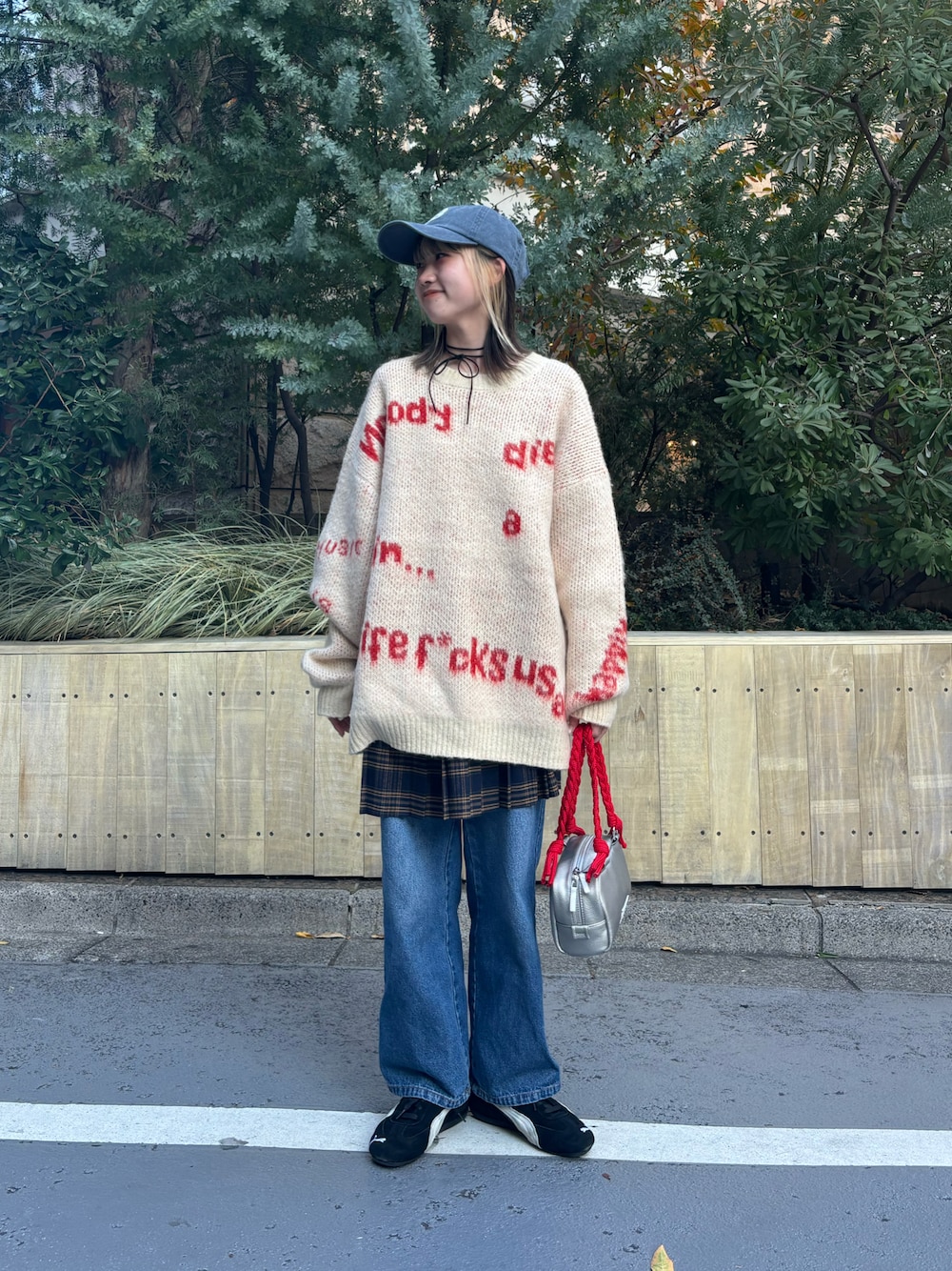 『ハンドクラフトロゴニット』 ユニセックスアイテムなのでお尻まですっぽり オーバーサイズできていただけます! ちくちく感がないのでとても着やすいです! 『プリーツミニスカート』 一枚でスカートとして履いてもかわいいです! 下にパンツをレイヤードして履くと流行りの レイヤードコーデを楽しめます!