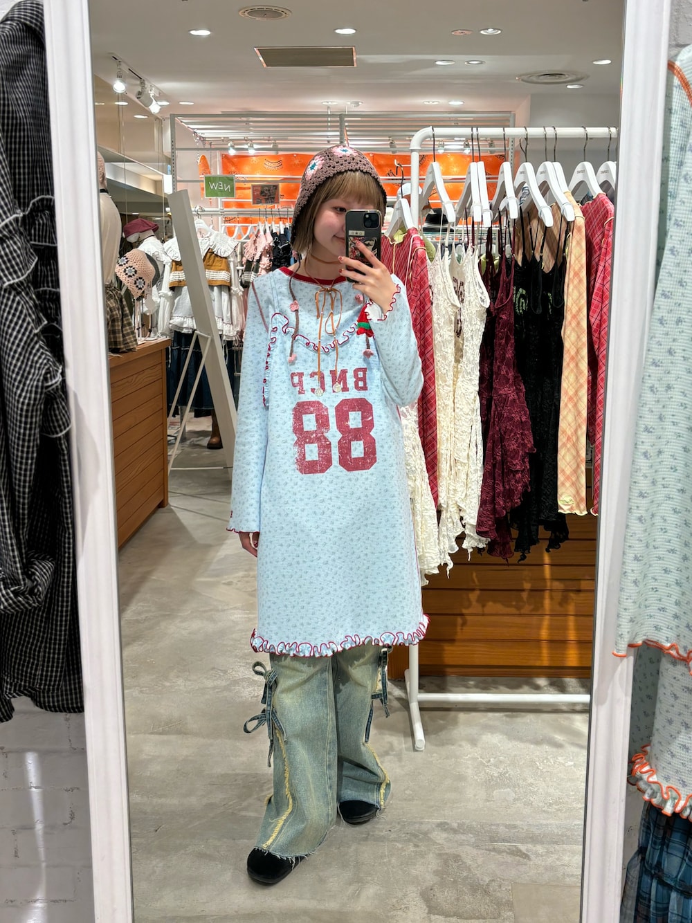 『Tee付きフラワーワッフルチュニックキャミ ワンピース』 tee付きなのでお得! 薄手のワッフル生地なので今の時期にぴったりです! 『裾リボンハイウエストフレアデニム』 153cmでXSサイズを着用してます! フレアなので足も長く見えます!