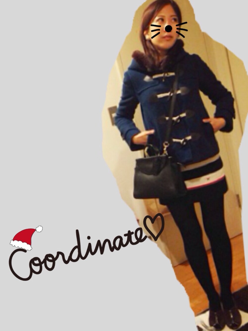 ダッフルコートは昨年のGUILD PRIME。そしてトリコロールのボーダーニットは今季のもの! このダッフルコートが好きすぎて、着る度にhappyな気持ちになれます(*^o^*)