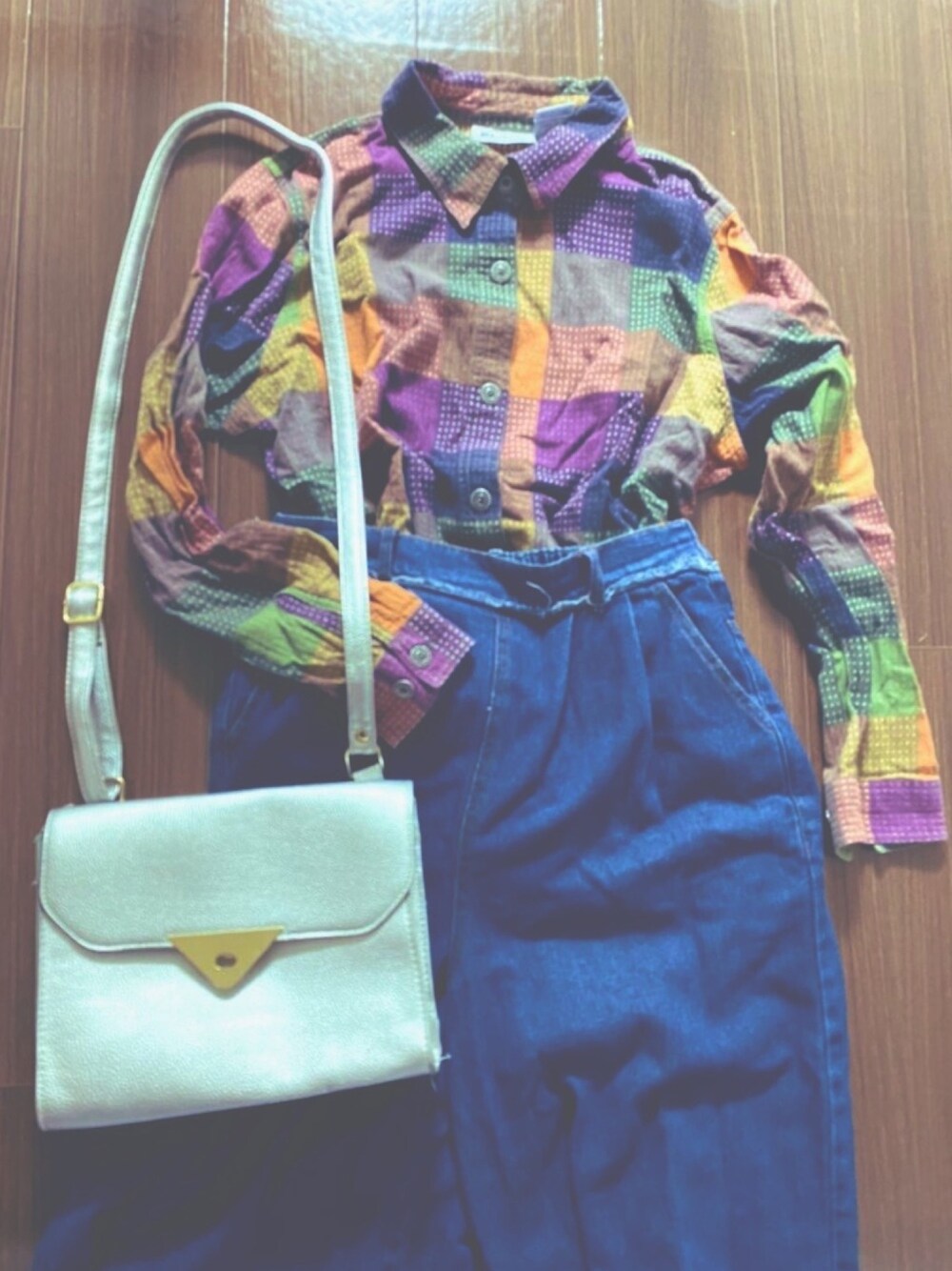 【素顔でいてよ】 by ハジ→ の「証。」 お気に入りのシャツです。 下北沢のニューヨークジョーで出会いました🙆♀️ 1800円ぐらいだったかな。 ヴィンテージ感満載のシャツに、シンプルなシルバーバッグを合わせるとなんとも言えないオシャレ感。 困ったときはデニム。