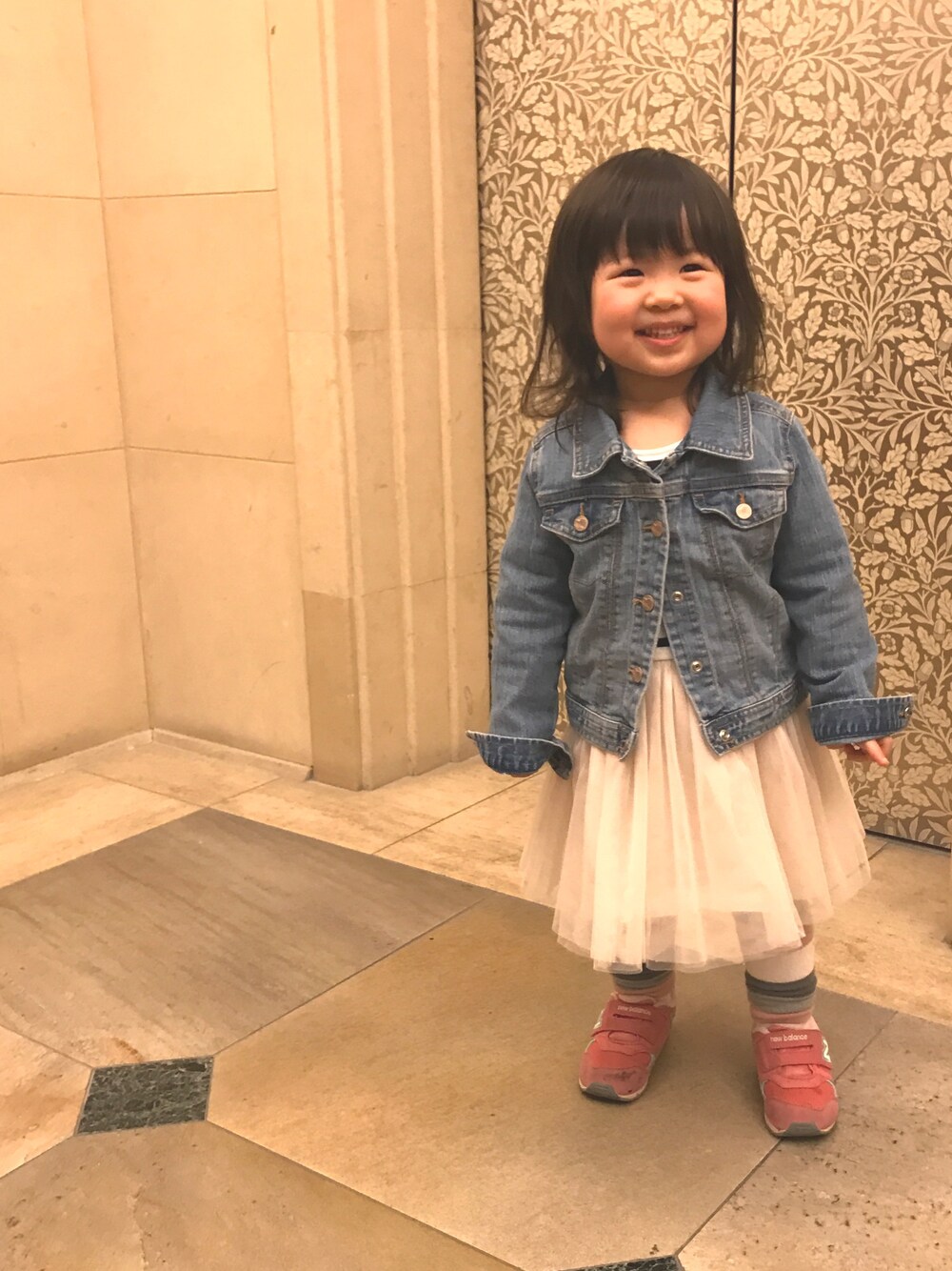 お食事に行ったときの写真。 ジージャンにふわふわスカートかわいい💕
