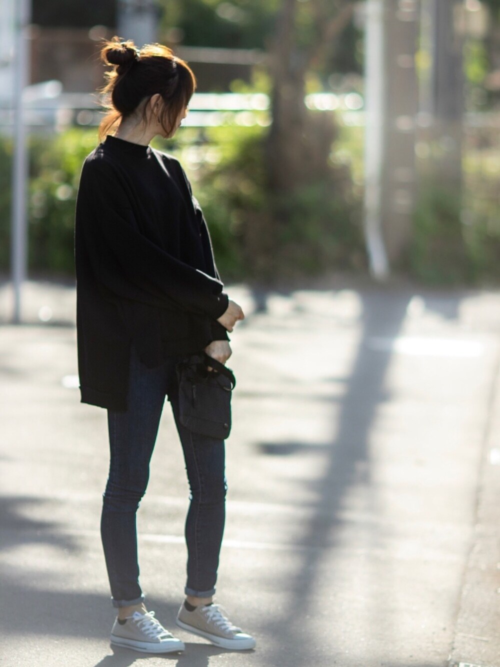 オーバーサイズスエットはお尻も隠れる丈でスキニーと合わせるとやっぱり可愛い✦ฺ