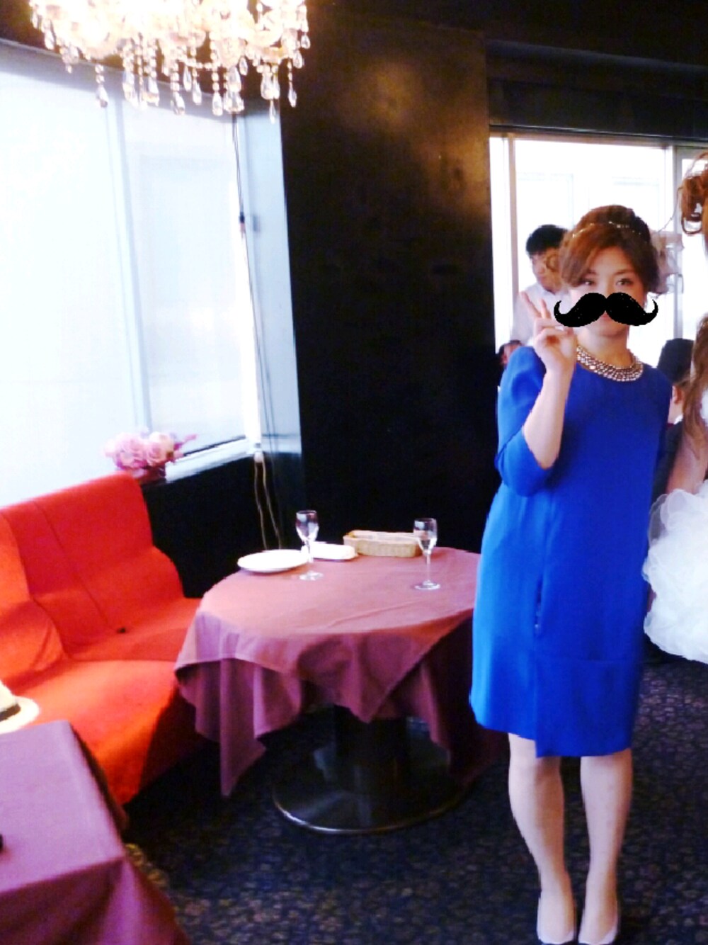 結婚式の二次会 キレイなブルーのワンピースにアップヘア