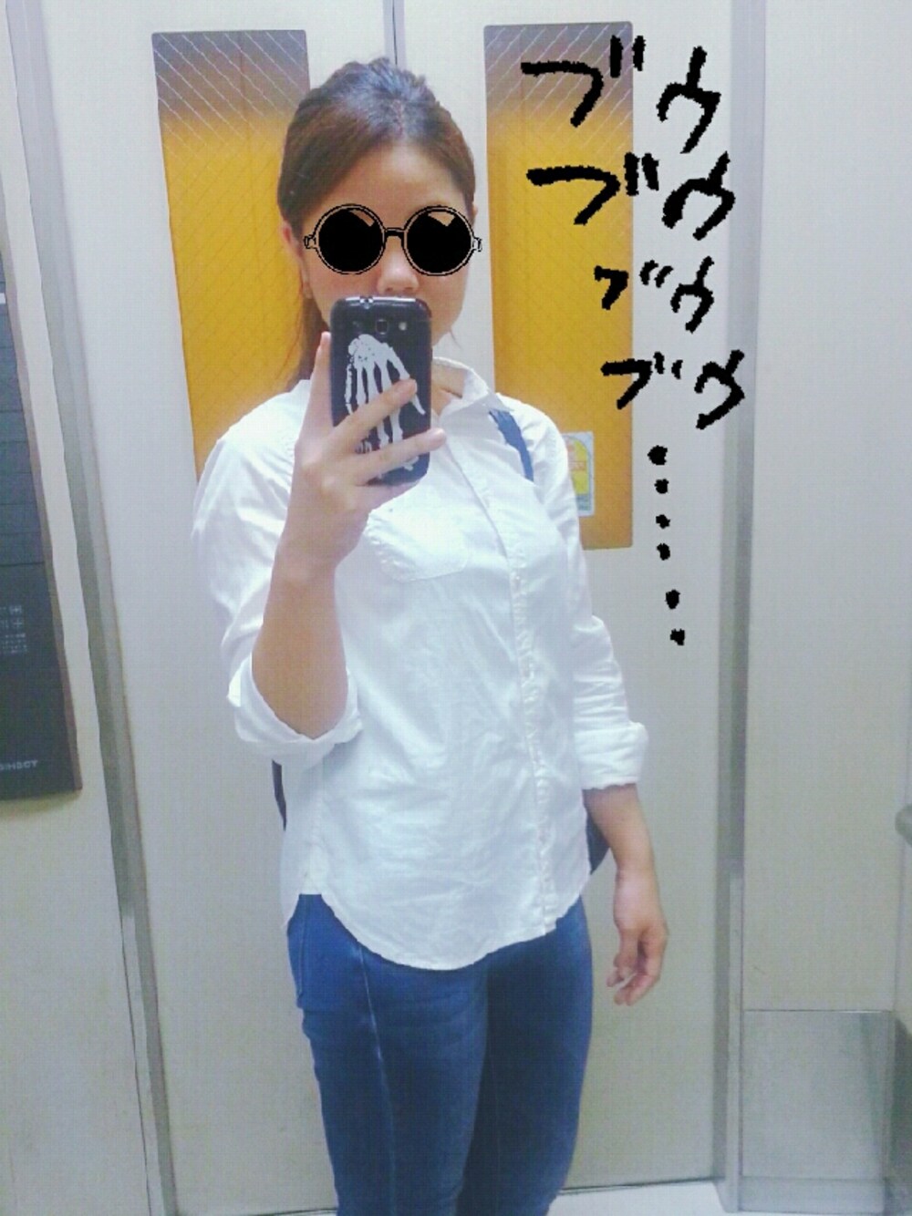 白シャツとスキニーに、白のパンプス。 ロールアップ。 後ろにラフに一つ結び。 シンプル。