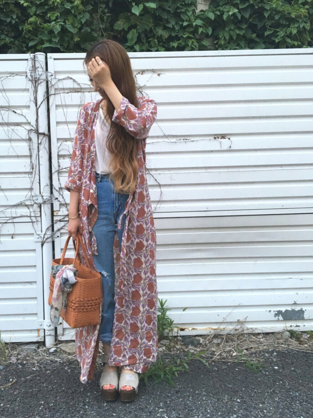 古着というか。。母の若い頃履いていたデニムと、存在感抜群✨OSHIMAREIのカシュクールワンピースを合わせました◎ ハイウエストなのでTシャツをインしました○ まずは白Tとデニムの定番コーデ○* 次は何をあわせようかな〜 そういうの考えてる時間て たのしい♡