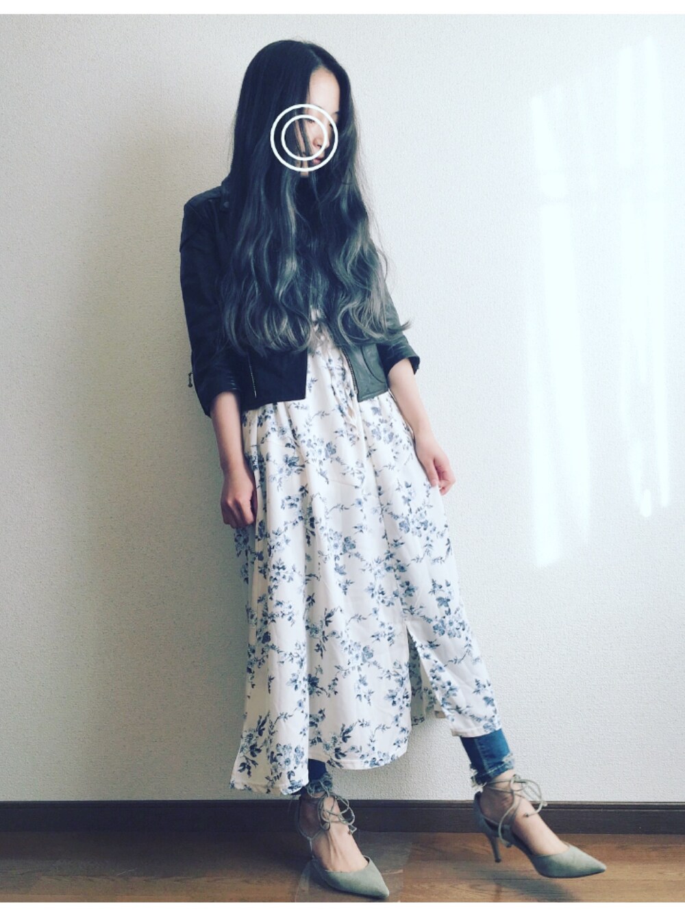 花柄ワンピにライダース🌷🌱 わたしの住むところも やっと暖かくなってきて、そろそろヒートテックを卒業できるかなあ ただ これで出かけられるのは日中だけ。 夜は1℃。。 まだまだ さむいです。