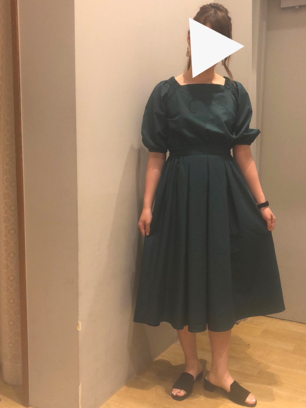シルエットがきれいなワンピース👗 タックが入ってるけど、そこまで広がらずに着れるのがおすすめ( ˊᵕˋ* ) ウエストマークも高めにあってスタイルアップ効果もバツグン✩*.゚