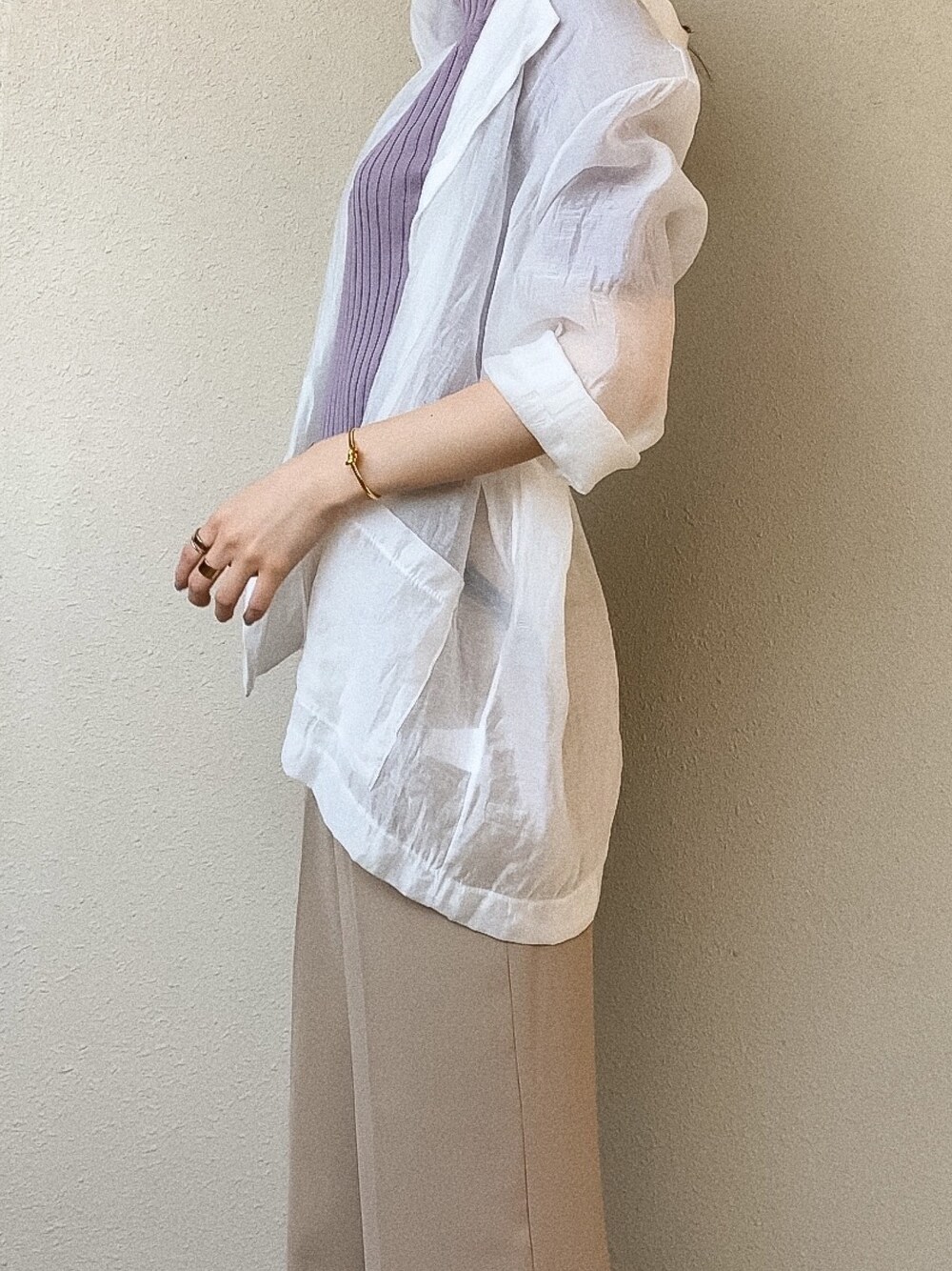 NAHOのその他アウター「via j(ヴィアジェイ) シアージャケット」を使ったコーディネート