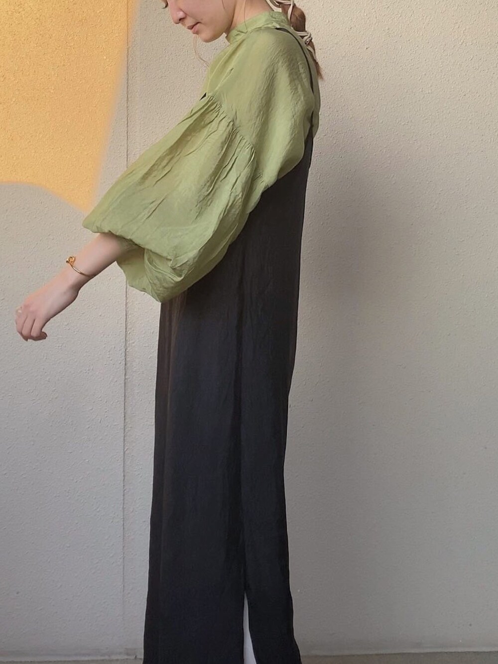ブラック系のワンピースを着用したレディースの夏コーディネートの1枚目の写真