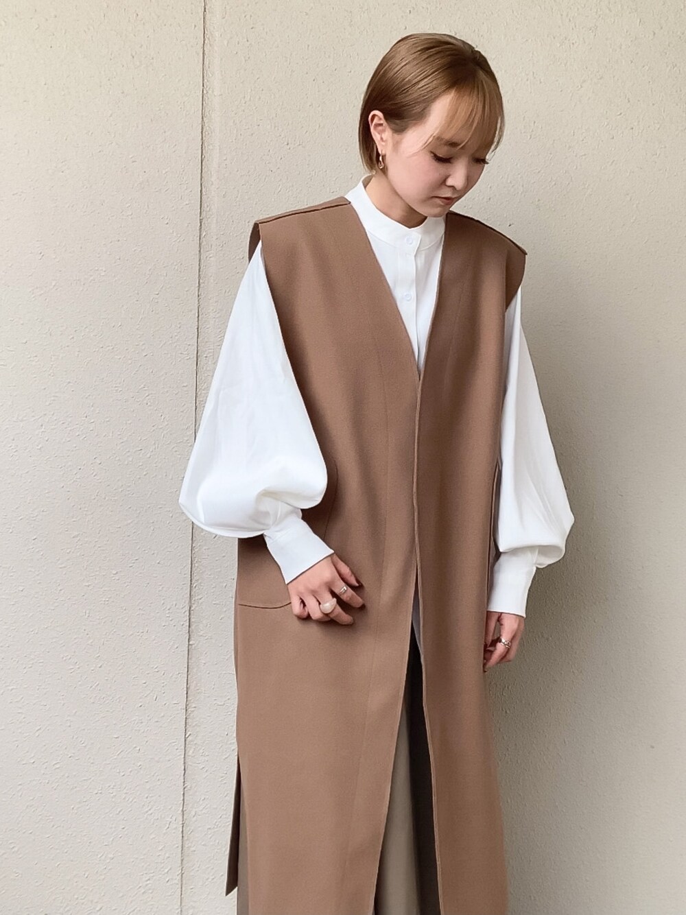 ブラウン系のその他アウターを着用したレディースの秋コーディネートの1枚目の写真