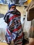 ニットキャップはY2K ディッキーズ、デカロゴ・ビーニー、00s(ゼロゼロズ)オールド・ディッキーズ、ジャガード・スペルアウト・ビーニー(Jacquard Spell Out Beanie)というもので現行では入手不可のチビタグ付きの希少なモデルです。 そしてそんな私を包み込むのがラルフローレン 90s Polo Ralph Lauren Home "Raton" cotton Jacquard Blanket(ラトン=ネイティブアメリカンをモチーフにした伝統的な柄) made in USAで当時カナダへ向けて主に販売されていたビンテージの大判ブランケットです。60/90の大判なので私のベッドはシングルなので、悔しくてくるまれてみましたw 以上
