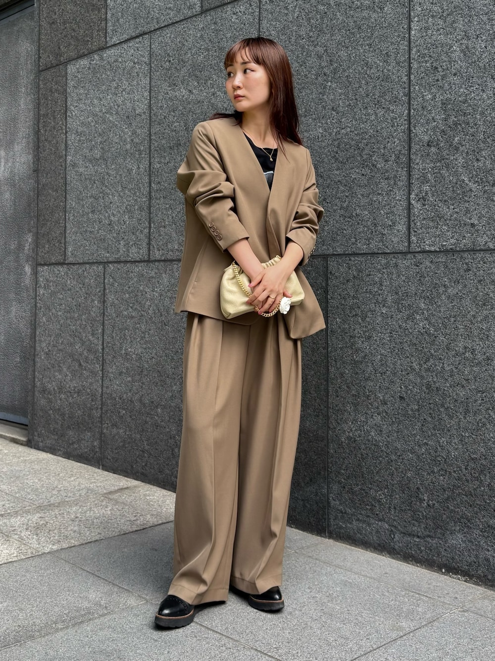 moeka(Lui's/EX/store 福岡店)のスラックス「【セットアップ対応】2タックワイドパンツ」を使ったコーディネート