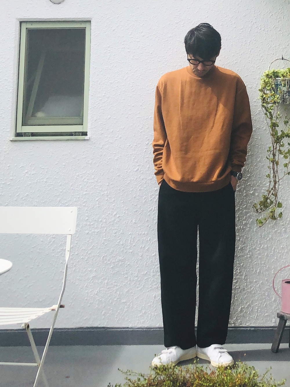 こんにちは、nagiです✋🏻 今日は今から銀行に。 お天気がイマイチだから 早めに行って帰ってこなければ🙄 スタバ寄っちゃうけど😁 さて 今日もカーブパンツを🎉 ブラウンと白で合わせてみました✋🏻 ゆるくて、今っぽい格好ですね😌 ただ今日は少し暑くて💦 もう少し薄いのにすればよかった😣 ではでは~