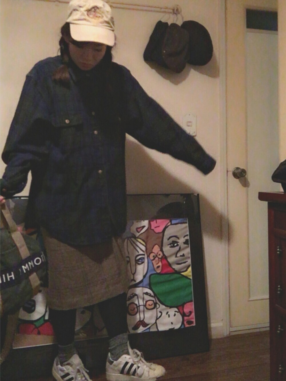 おはようございます🌞🌞 ご覧頂きましてありがとうございます✨ ダンスをやっていてHIPHOPも好きな古着っ子です🖖たまには大人カジュアルも着ますよ?🤔 古着スカート着回し4日目✨🙄 今日のコーデのポイントは大きめのブラックウォッチ柄の厚手のシャツにpoloのベージュキャップがしっくりきてます🤗 そして古着屋で購入した80年代のadidas SuperStarです💓👟 👕古着ブラックウォッチ柄シャツ 👖古着ブラウンチェックスカート 🎩polo キャップ 👟adidas superstar 💼Tommy hilfiger グリーン このくらいの温度がちょうどいいですね🤗