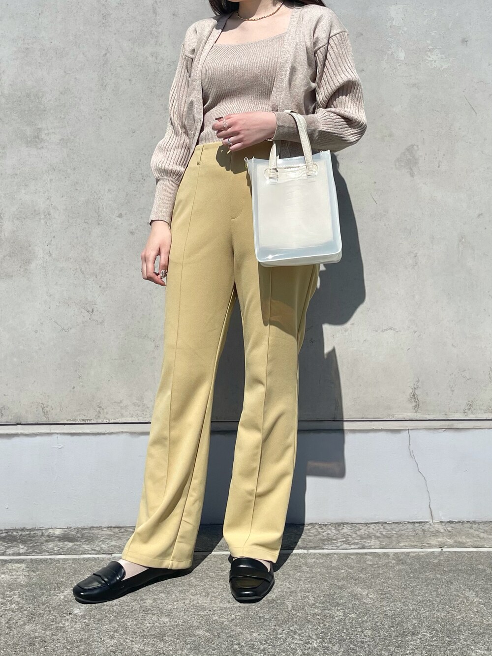 ニットカーディガンとキャミは別で着ても着回しがしやすいアイテムですが、合わせて着るのがオススメです! すっきり見えるシルエットに、袖がふんわりしているので女性らしく着ていただけます♡ イエローのパンツは、柔らかい素材で後ろもゴムなので楽に履いていただけますよ。 さらっとしているのでこれからの温かい季節にもぴったりです♪ サイズはS.M.L展開で私は165cmでLサイズを着用しています☺︎