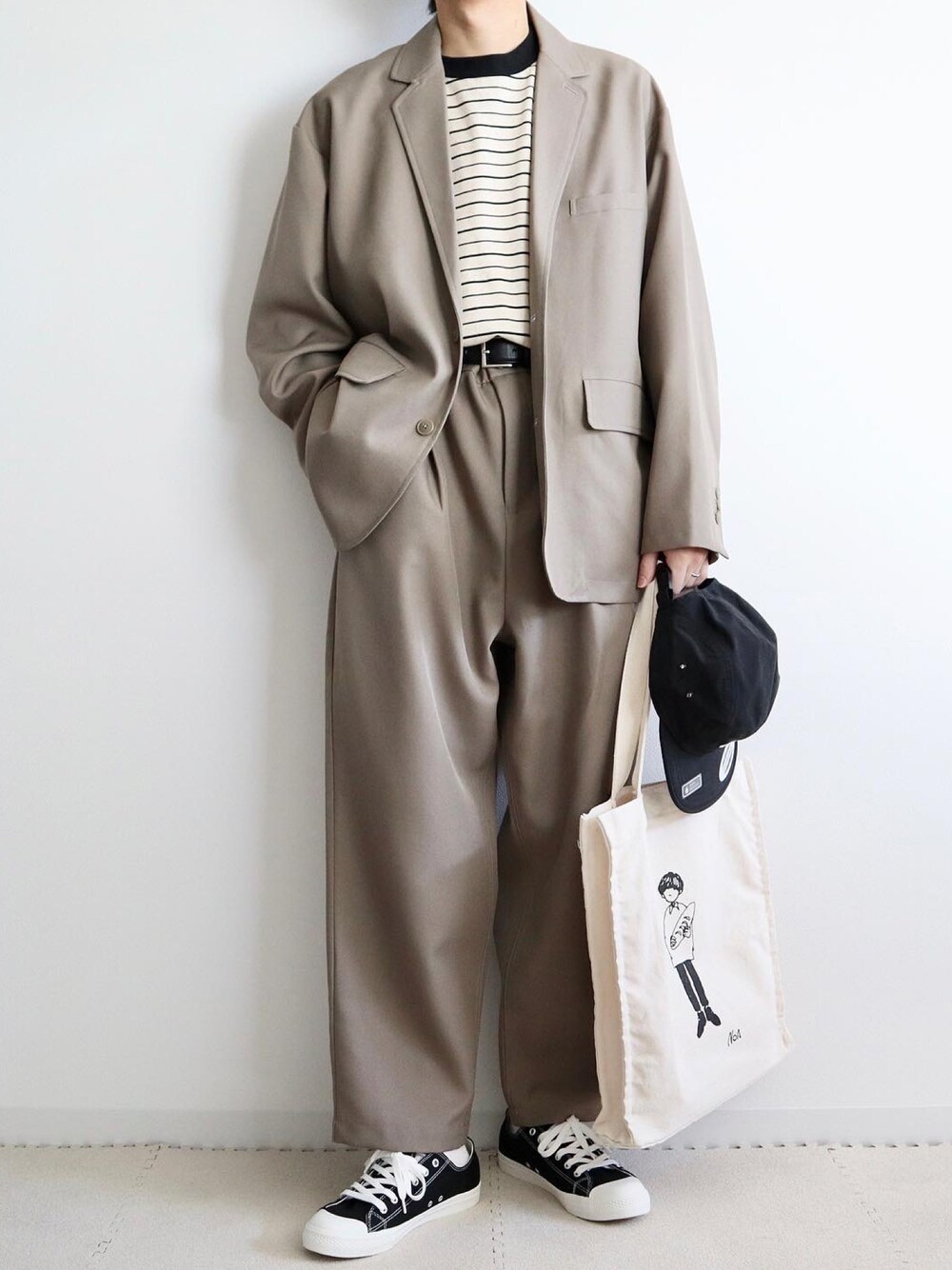 なごのセットアップ「◆上下セット◆ビッグシルエット スタプレ セットアップ/シングルテーラードジャケット/タックバルーンワイドパンツ【ENDER PRODUCTS/エンダープロダクツ】」を使ったコーディネート