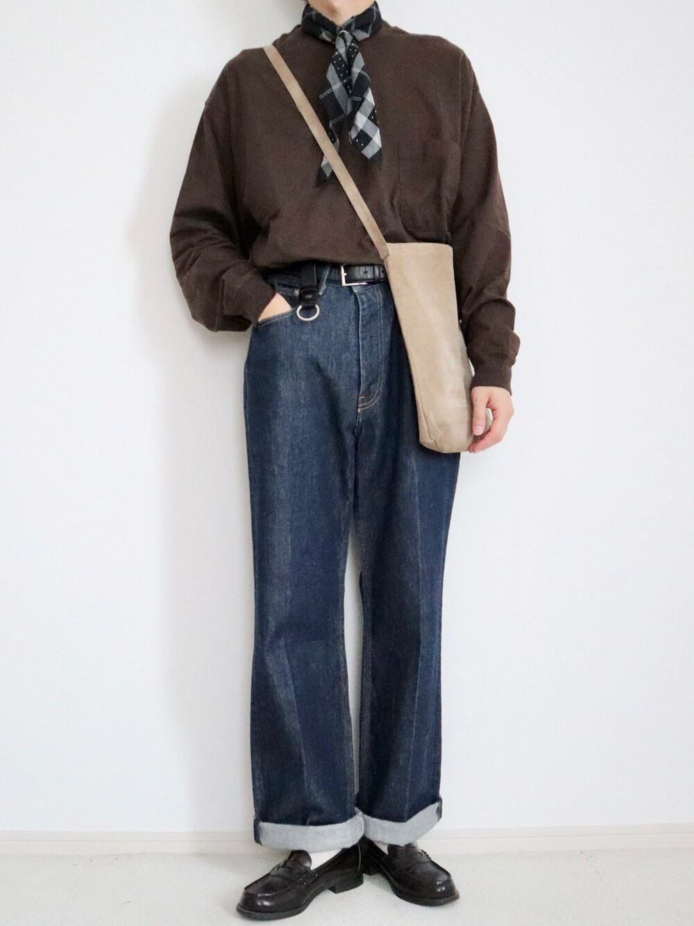 brown × denim いま時期ちょうどいいロンTコーデ👀