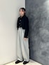 ほぼ足コーデです💫 ジャケットは短丈で前のカットデザインもあり、より足が長く見えます🎶 インナーと靴のリボンデザインを合わせてみました🎀