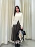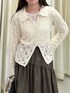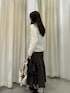 繊細なレーストップスを主役に、落ち感のあるギャザースカートを合わせたスタイリングです🫶 透け感のあるレーストップスは、インナーにさらにレースを重ねています☑️ 足元はあえてシンプルにまとめて、全体を落ち着いた印象に仕上げました🙂↕️✨