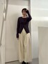 コンパクトなリブカーディガンに、ボリューム感のあるアイボリーパンツを合わせたバランスコーデ🤍 落ち着いたカラーリングで大人っぽくまとめつつ、柔らかなシルエットでこなれた雰囲気に仕上げています✨