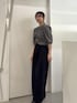立体感のあるギャザーデザインが印象的なチェックトップスに、ワイドなブラックパンツを合わせた上品モードスタイル🩶 シックな配色ながらも、ディテールで女性らしさをプラスし、きちんと感と抜け感を両立したコーディネートです🎶