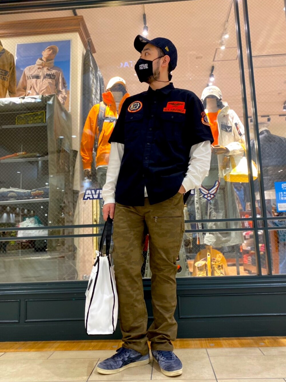 よく見ると迷彩が施されているボトムス。 カーゴですがシルエットが綺麗なので意外とフォーマルとも合います! 是非、履きに来てください!! TEL:080-4959-2370 2021.3.12 AVIREXコクーンシティ店STYLE