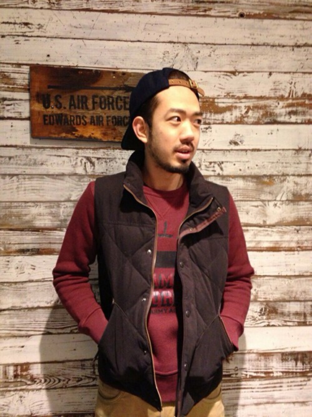 トレーナーにベストを合わせて先取り春コーデ!