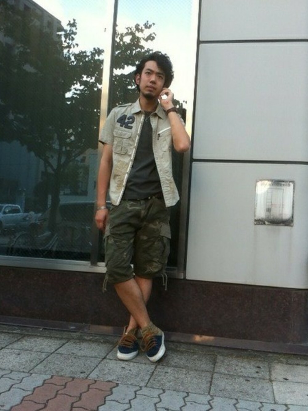KJのカーゴパンツ「AVIREX(アヴィレックス) メンズ カモ M-65 カスタムショーツ」を使ったコーディネート