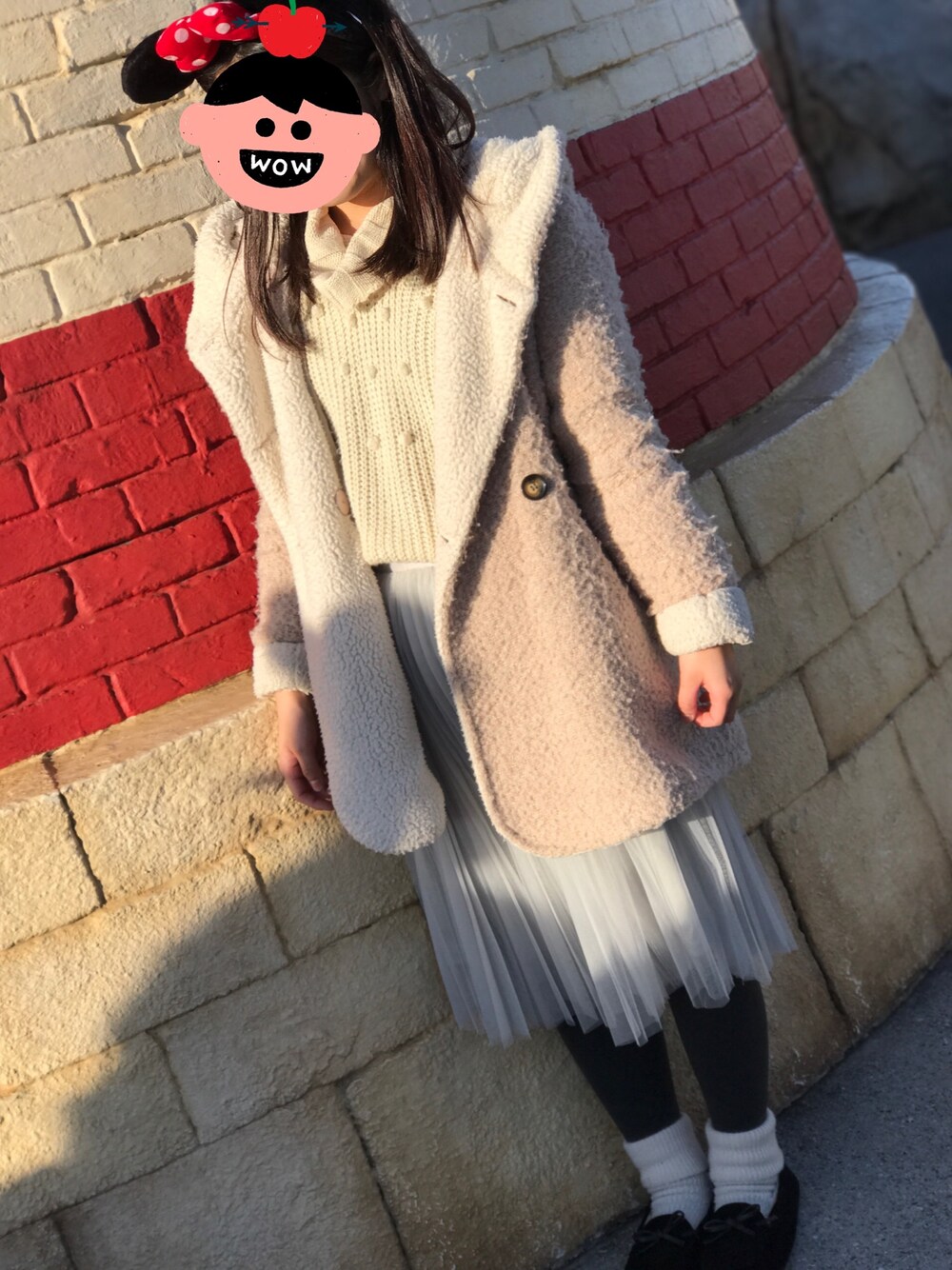 ディズニーです。 もこもこしてますね 笑 昼間は思ったより寒くなかったのでチュールスカートでも大丈夫でした🌷