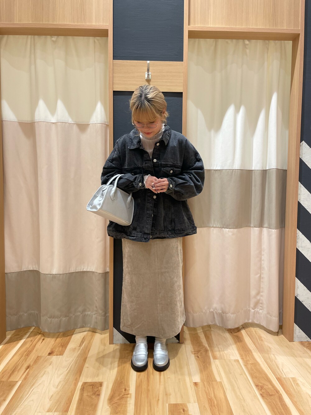 オーバーサイズの華奢見えするジャケットは スカート合わせが大人っぽくてオススメです🖤 中に着ているコーデュロイのジャンスカは、 前がハーフジップになっており、肩紐のベルトっぽいデザインもポイント!! 後ろにはスリットが入っていて、背中にもデザインがあるので 上着を脱いでも可愛く着用できます😉 シアートップスは何枚あっても🙆🏻♀️な着回し力高めのアイテム!!