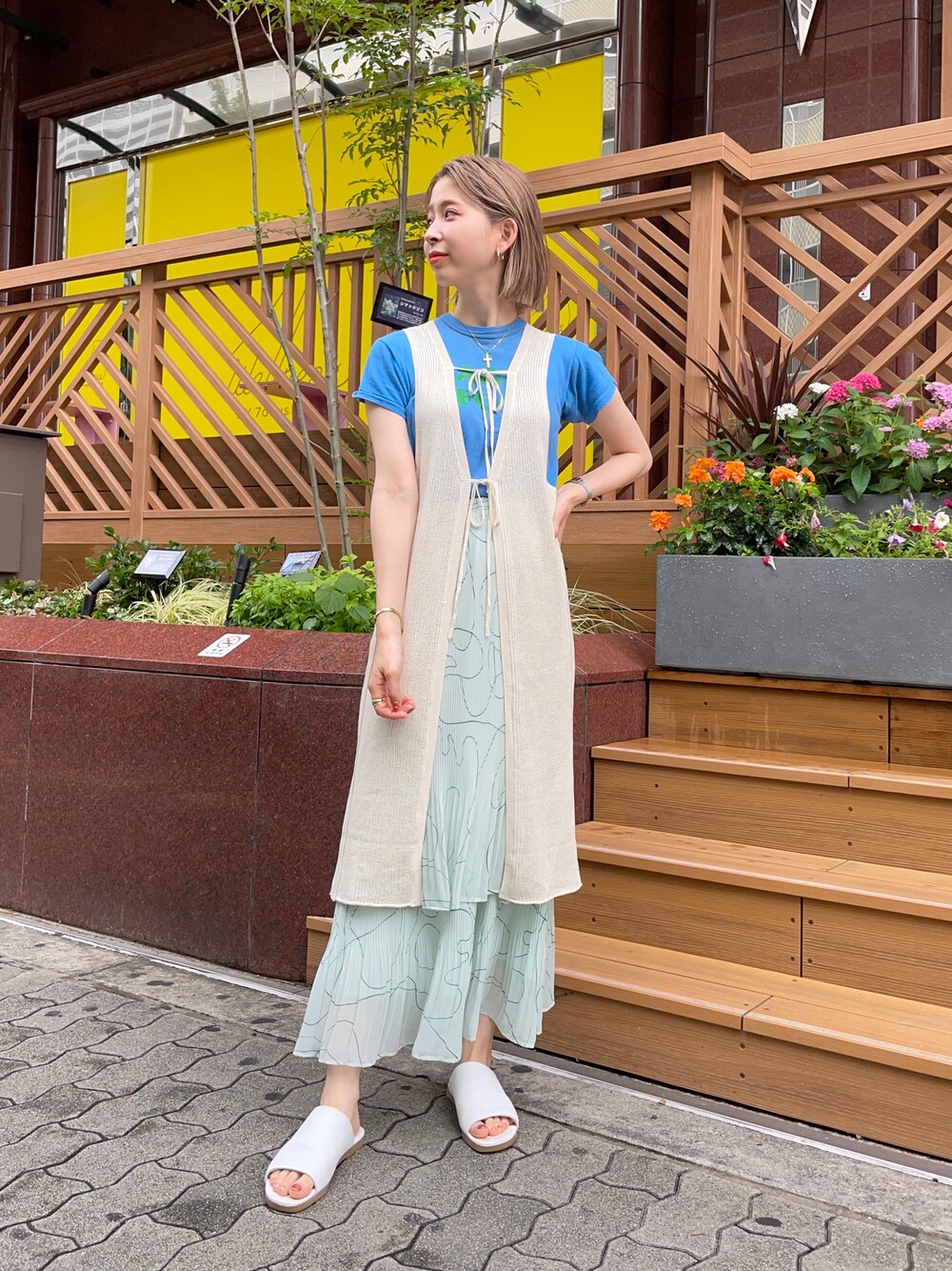 ブルーを基調に涼しげにスタイリング☺︎ 新作のスカートはビッグサイズのスウェットなどと 合わせても可愛いですよ〜!