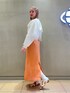 BEAMS BOYのビーズヘアアクセは ピンクのカラーが可愛くて即買いしました♡ 最近髪の毛が伸びたのでヘアアレンジに活躍しそうです! こちらも新入荷のオレンジが可愛いスカートと ポイントで牛柄を足元に入れました〜☺︎!