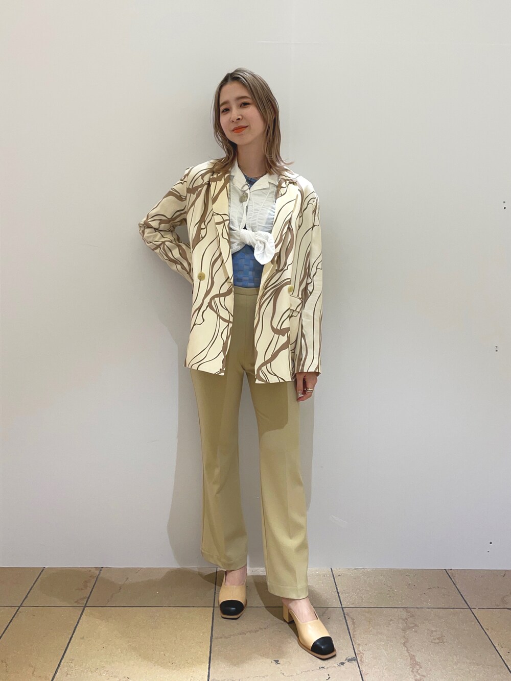 コウノナホのテーラードジャケット「Ray BEAMS / プリント 2ボタン ダブル ジャケット」を使ったコーディネート