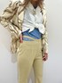 春らしいカラーリングで合わせました〜☺︎! インナーに着たシャーリングシャツを結んで 中のチェッカー柄トップスをちらっと! パンツは腰のカットがポイントです!