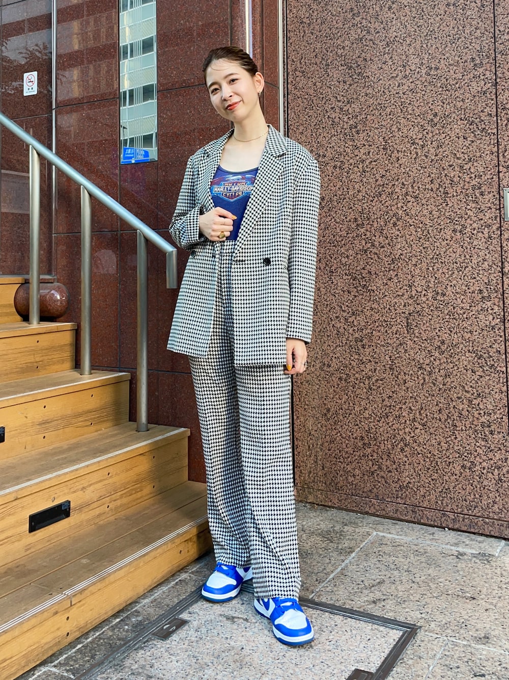 毎年好評のジャケットセットアップです! 今年は千鳥柄が仲間入り〜!! パンツは細身のフレアーシルエットで スタイル綺麗に着ていただけます〜!