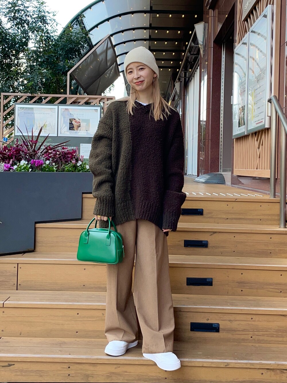 今日は珍しくストリート感のあるスタイリングです〜! Name.別注のニットはモチモチした生地が 軽くて暖かくて優秀!シルエットはName.らしく オーバーサイズになっております! パンツはだぼっと、スニーカーにビーニーととことん ストリート漂うコーディネートにしてみました〜!!