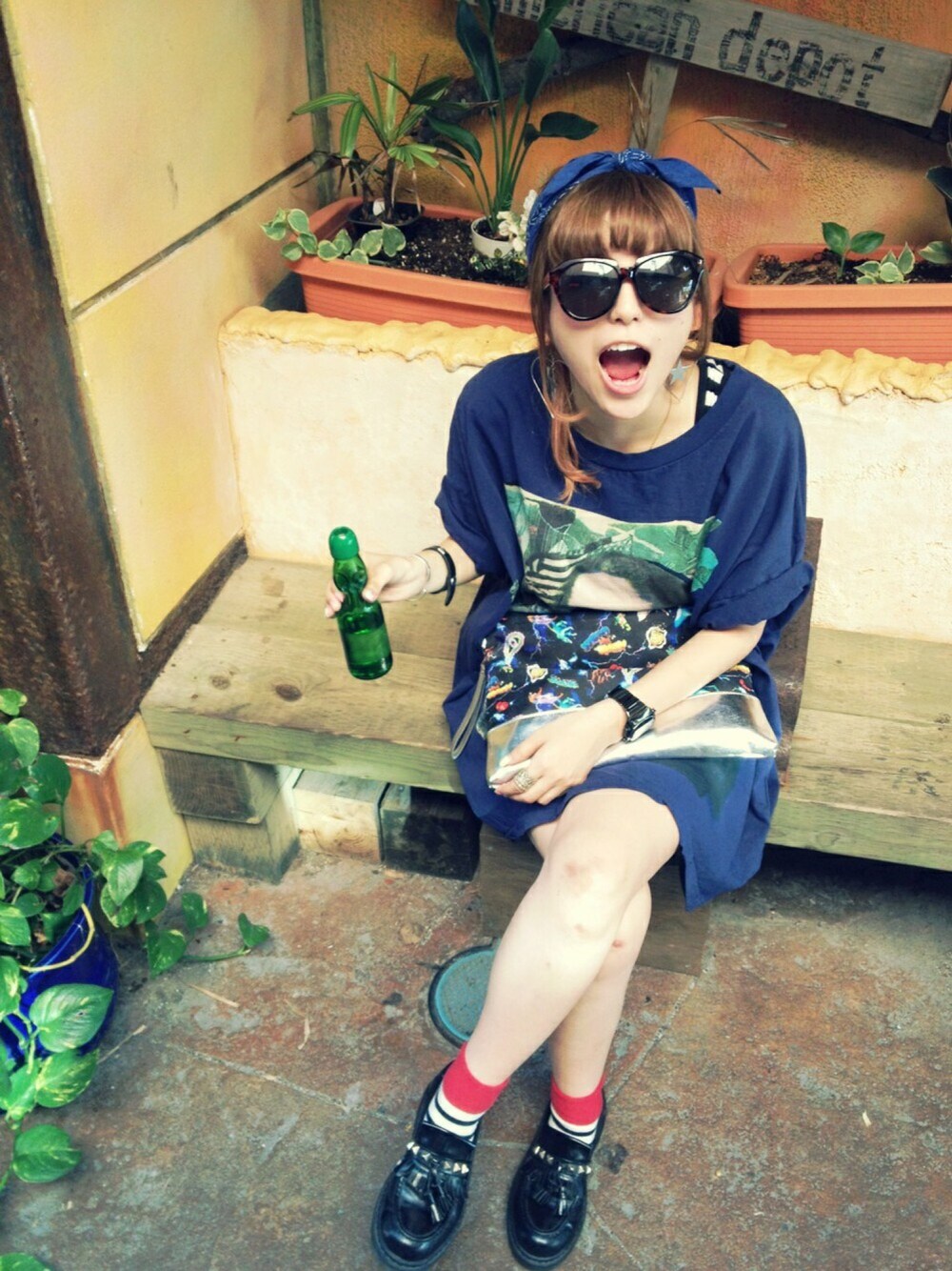 着用アイテム その他:ラムネ 前upしたやつの別写真ver〜笑 夏ですな〜 梅雨入りしちゃったけど、今日は久しぶりの晴れ!꒰ ๑ ›◡‹ ๑ ꒱ 今日もラムネ日和だー♪
