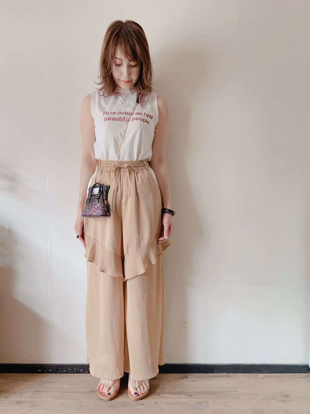 saraのタンクトップ「beautiful people / ビューティフルピープル:suvin pima jersey message tank-top:1915310007[ANN]」を使ったコーディネート