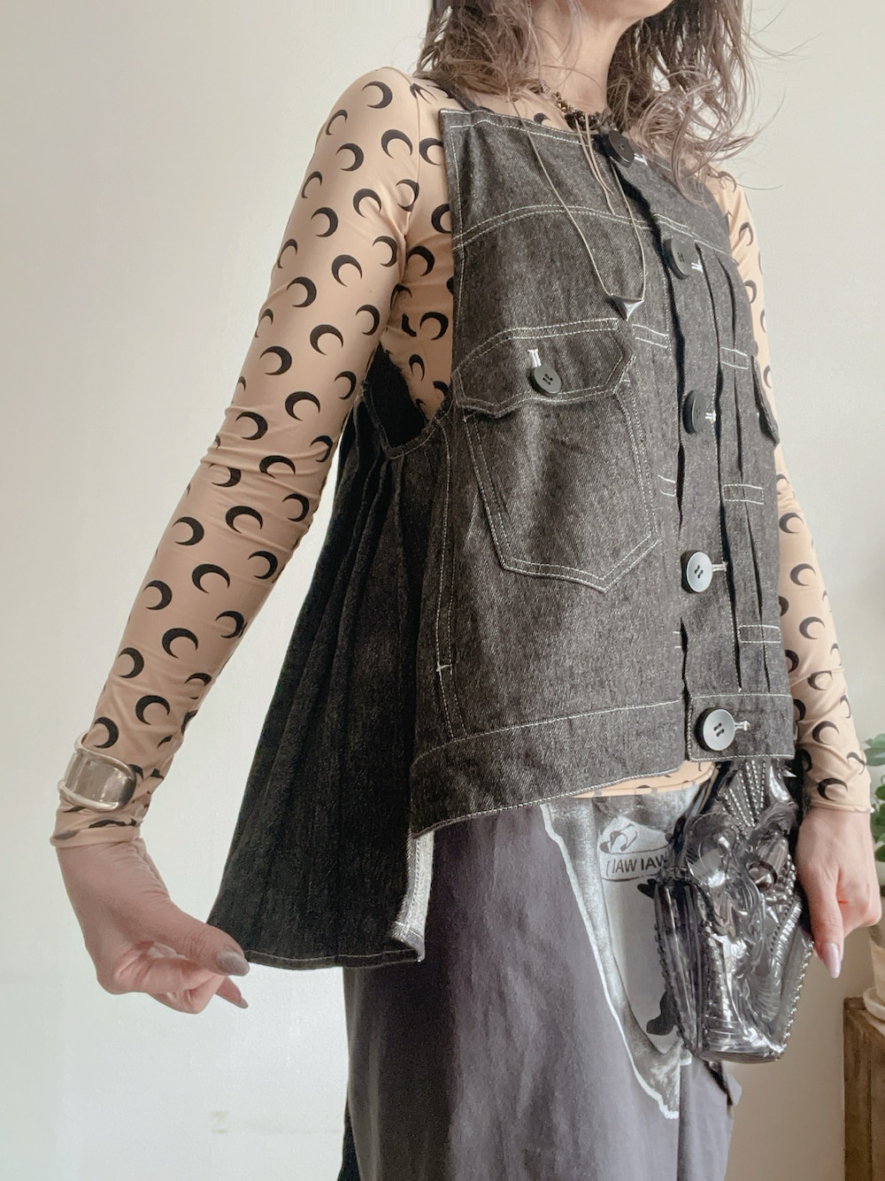 MARINE SERRE¥34,900chuclla¥24,980SacaimameOPEN Yychuclla¥6,980STELLA McCARTNEY¥62,700TIFFANY&Co.loni¥12,100この画像から似たアイテムを検索できます871312お気に入り (6)120saraさんへのコメントNO COMMENTコメントはスマートフォン用アプリからご利用できます着用アイテム¥34,900MARINE SERREMARINE SERRETシャツ/カットソー (ベージュ系)Tシャツ/カットソーサイズ:S着用コーデ:34件探すZOZOTOWNで探す¥24,980chucllachucllaその他トップス (グレー系)その他トップスサイズ:S着用コーデ:14件探すZOZOTOWNで探すSacaiSacaiMA-1 (ブラック系)MA-1探すZOZOTOWNで探すmamemamemamekurogouch Vinyl Chloride Cloth Clutch Bag ¥52800クラッチバッグ (ブラック系)クラッチバッグ探すZOZOTOWNで探すOPEN YyOPEN YyYY HUG&HEART CUTOUT SKIRT, CHARCOAL Mスカート (グレー系)スカート探すZOZOTOWNで探す¥6,980chucllachucllaその他パンツ (ブラック系)その他パンツサイズ:S着用コーデ:12件商品を見るZOZOTOWNで購入する¥62,700STELLA McCARTNEYSTELLA McCARTNEYレインシューズ (ブラック系)レインシューズサイズ:4着用コーデ:10件探すZOZOTOWNで探すTIFFANY&Co.TIFFANY&Co.エルサ ペレッティ スモールボーン カフ ¥218900バングル/リストバンド (シルバー系)バングル/リストバンド探すZOZOTOWNで探す¥12,100loniloniネックレス (シルバー系)ネックレスサイズ:FREE着用コーデ:42件探すZOZOTOWNで探すsaraのTシャツ/カットソー「SECOND SKIN MOON TOP -RECYCLED-」を使ったコーディネートコメントを表示2026.3.30着用ブランドMARINE SERREchucllaSacaimameOPEN YySTELLA McCARTNEYTIFFANY&Co.loniタグ#レイヤードスタイル#レイヤード#デニムキャミ#セカンドスキン#キャミ×Tシャツ#スカートパンツ#パンツスカート#レースパンツ#MA-1#ドッキングアウター#ブーツ#PVC#pvcバッグ#クラッチバッグ#ブラックデニムモデル情報女性・156cm似ているアイテムMARINE SERRE × Tシャツ/カットソーchuclla × その他トップスSacai × MA-1mame × クラッチバッグOPEN Yy × スカートchuclla × その他パンツSTELLA McCARTNEY × レインシューズTIFFANY&Co. × バングル/リストバンドloni × ネックレスsara@nailspice / 156cm / WOMEN0コーディネート0フォロワー注目のコーディネートアプリでもっと見るもっと見る