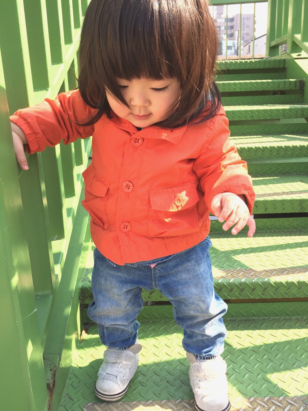 散歩日和☆ 分かりにくいけど、デニムonデニムコーデ。 小窓… 自分でサングラスを出してかけようとしてる娘。