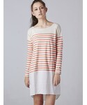 透け感のあるシフォン生地の切り返しがかわいいボーダーワンピは夏っぽくておすすめです!